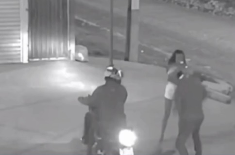 De acordo com as informações, a vítima voltava de uma lanchonete quando foi abordada por dois homens em uma motocicleta. As imagens mostram o momento em que o garupa desce armado, aborda a mulher no meio da rua e anuncia o assalto.