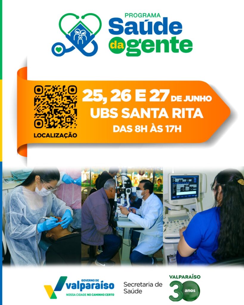A Prefeitura de Valparaíso de Goiás realiza, entre os dias 25 a 27 de junho, a 3ª edição do programa Saúde da Gente, que leva uma ampla estrutura de atendimentos médicos gratuitos diretamente aos bairros. Desta vez, as ações acontecem na Unidade Básica de Saúde (UBS) do bairro Santa Rita, contemplando moradores tanto do Santa Rita quanto do Marajó, com diversos serviços de saúde, consultas especializadas e exames.