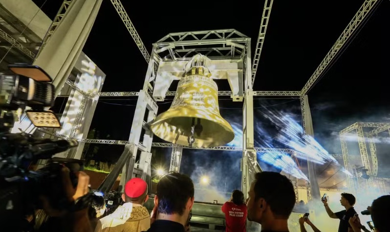 Maior sino do mundo badala pela primeira vez em Trindade e marca início da Romaria do Divino Pai Eterno