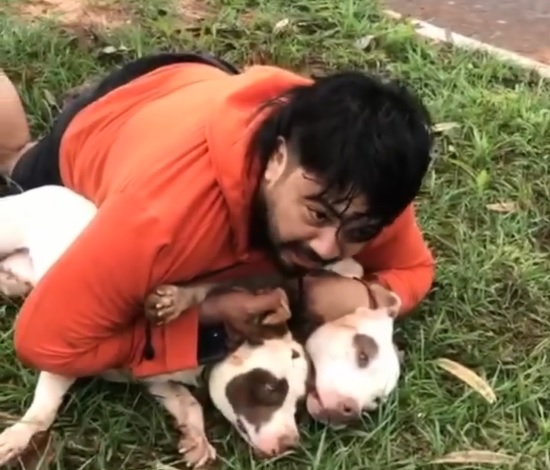 Lutador de Muay Thai imobiliza dois pit-bulls após sofrer ataque