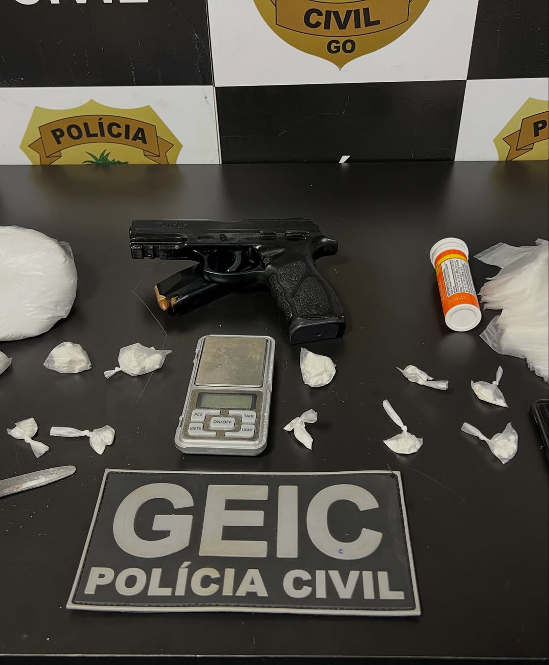O Grupo Especial de Investigação Criminal (GEIC) de Luziânia prendeu em flagrante, nesta semana, um homem de 21 anos acusado de tráfico de drogas e corrupção de menores em Valparaíso de Goiás. Segundo a Polícia Civil, o suspeito utilizava um adolescente para realizar a entrega de entorpecentes nas proximidades de escolas e igrejas dos bairros Parque Esplanada I e Chácaras Ypiranga A — locais com intensa circulação de crianças e famílias, o que gerava alto risco para a comunidade.