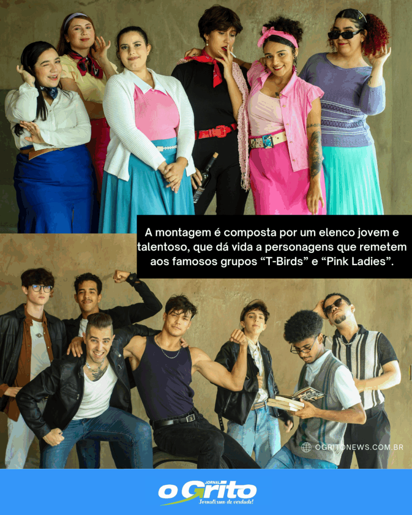 A montagem é composta por um elenco jovem e talentoso, que dá vida a personagens que remetem aos famosos grupos “T-Birds” e “Pink Ladies”, em uma narrativa recheada de romance, amizade e descobertas típicas da juventude. A peça recria o ambiente de uma escola americana da época, com todos os conflitos e alegrias que fazem parte do amadurecimento dos personagens.