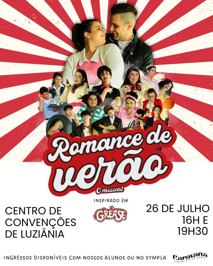 Luziânia recebe no próximo dia 26 de julho o espetáculo “Romance de Verão – O Musical”, uma produção inspirada no icônico musical norte-americano Grease, sucesso dos anos 70 que eternizou o romance de verão entre Sandy e Danny.
