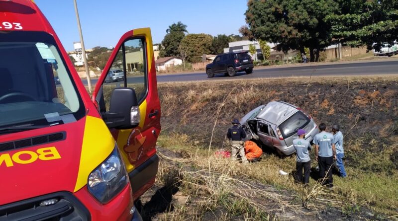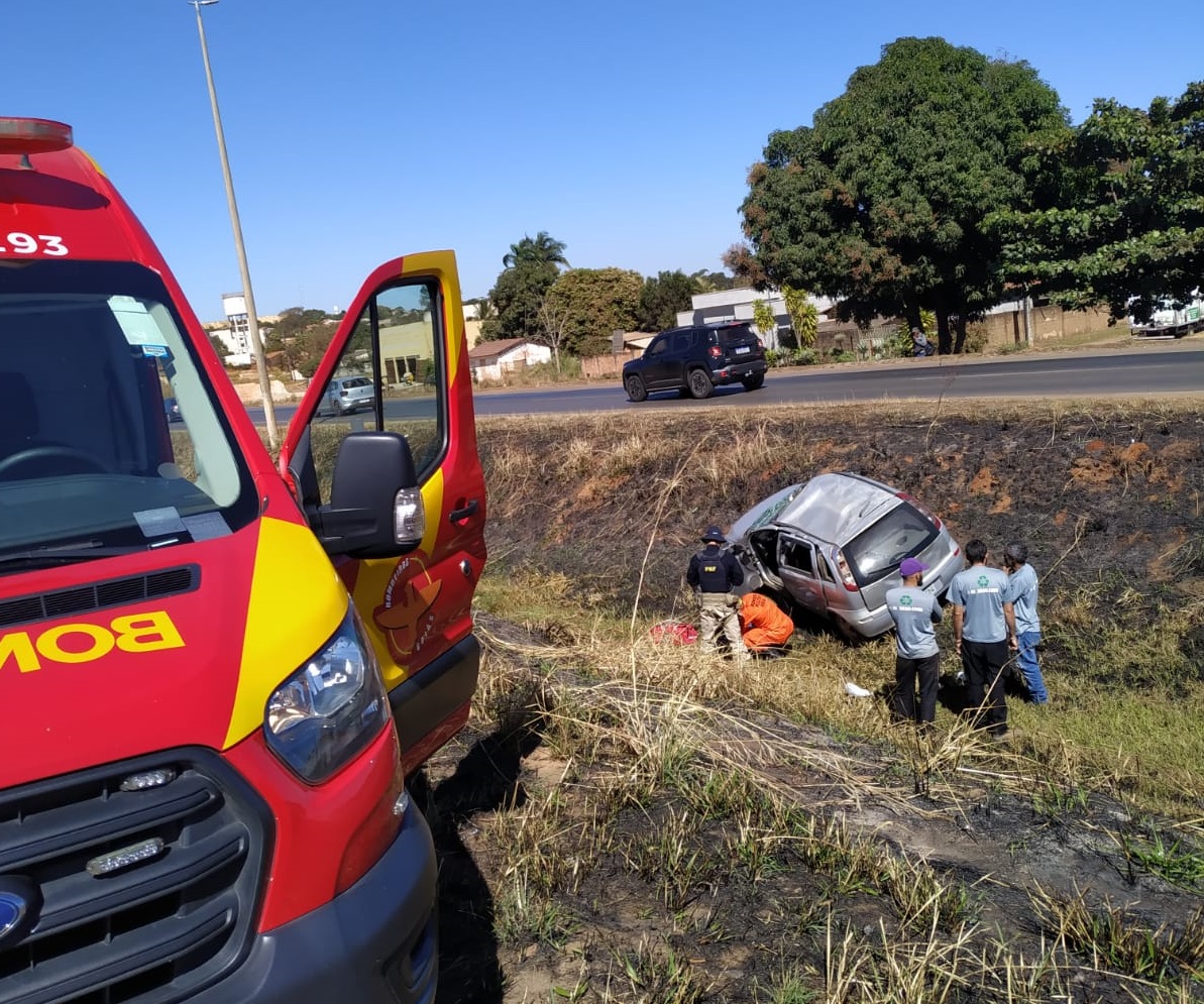 Motorista capota carro ao tentar desviar de veículo na BR-040, em Luziânia