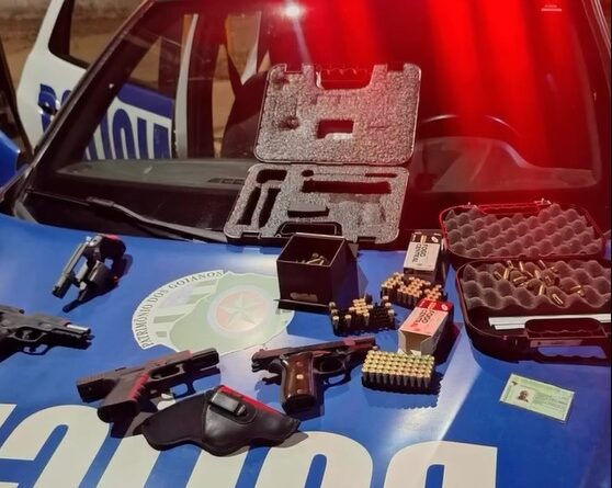 Um homem foi preso em flagrante após efetuar disparos de arma de fogo dentro de um condomínio na Avenida das Palmeiras, em Valparaíso de Goiás. A Polícia Militar encontrou com o suspeito quatro armas e mais de 240 munições de diferentes calibres.