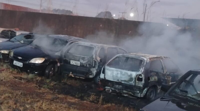 Segundo informações preliminares, o fogo começou em uma área de vegetação próxima e rapidamente se alastrou, alcançando veículos que estavam apreendidos.