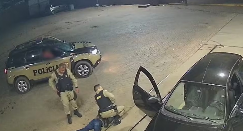 As câmeras de segurança mostram o instante em que o agressor estaciona o carro para abastecer e se afasta do veículo. Nervosa, a vítima retira o cinto de segurança e faz sinais com as mãos, aguardando uma oportunidade para fugir. Quando avista a viatura da PM, corre desesperada em direção aos policiais. O suspeito ainda tenta impedir, mas é rapidamente contido. “Ela vê a viatura e percebe a possibilidade de se salvar daquela situação de violência pela qual vinha passando”, explicou o capitão Márcio Brandão, da Polícia Militar.