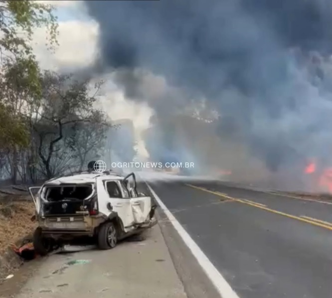 Na tarde desta sexta-feira (5), um grave acidente foi registrado na BR-040, entre Luziânia e Cristalina (GO). Um carro particular colidiu de frente com um caminhão carregado de querosene, provocando um incêndio de grandes proporções.