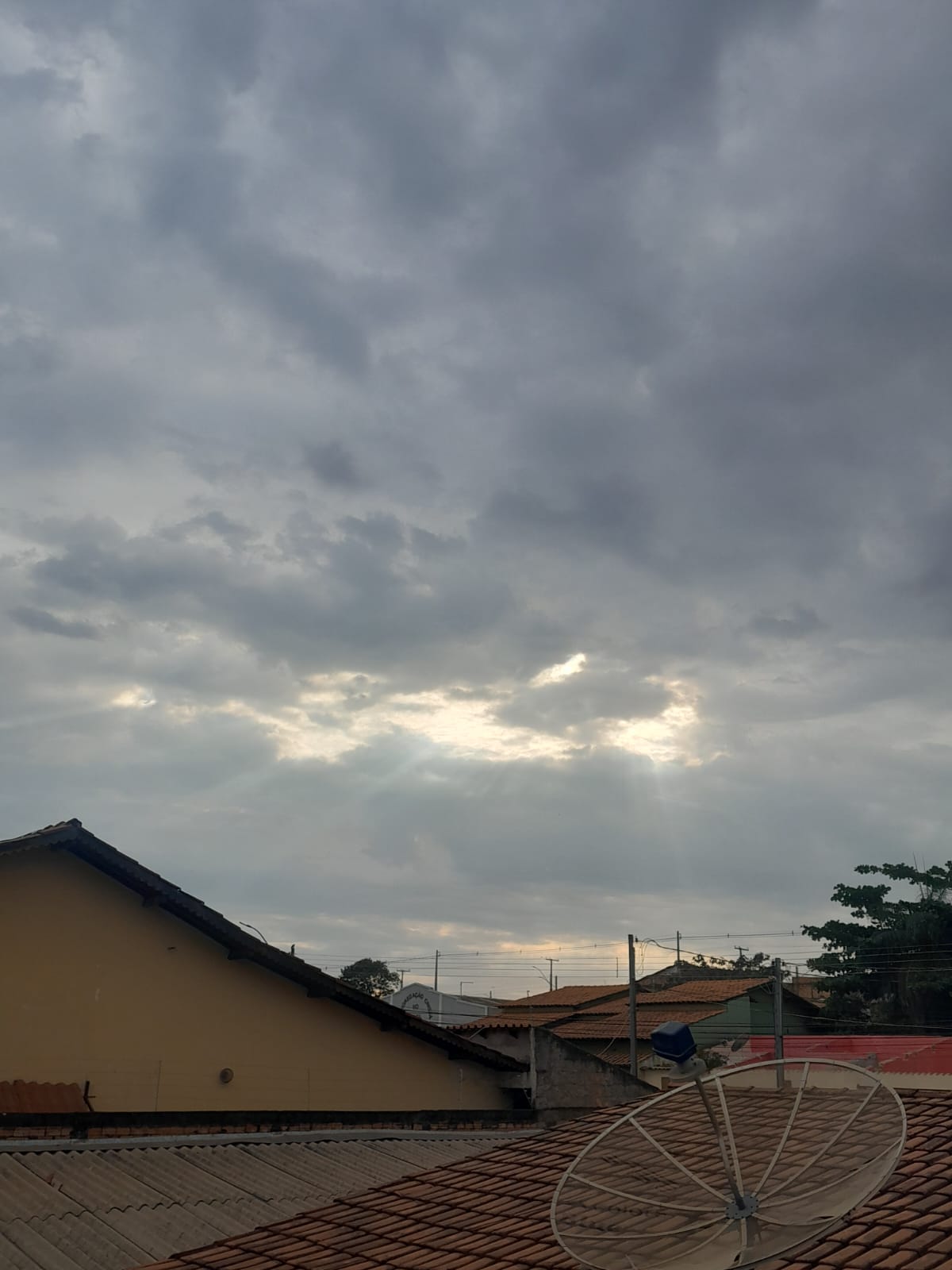 O céu de Cidade Ocidental amanheceu nesta quarta-feira (17) nublado e com clima mais ameno. De acordo com o Centro de Informações Hidrológicas, Meteorológicas e Geológicas de Goiás (Cimehgo), uma frente fria combinada com a umidade vinda da Região Norte pode provocar chuvas isoladas em Goiás a partir de hoje.