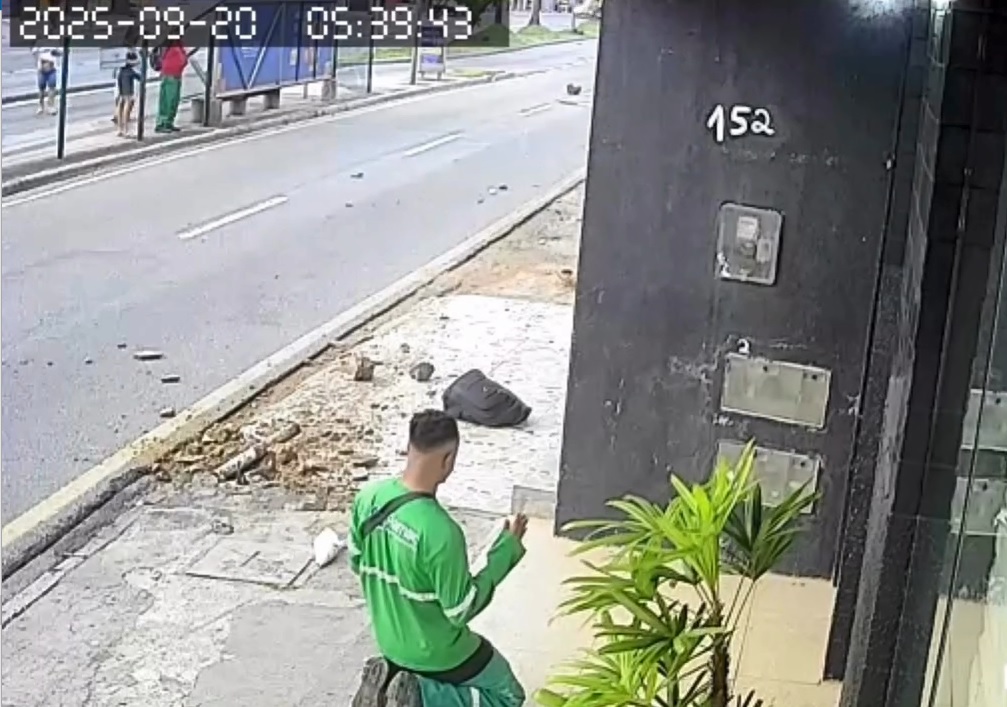 Erick contou que estava sentado na calçada tomando café, enquanto aguardava o ônibus da empresa de coleta de lixo chegar, quando percebeu que um carro, em alta velocidade, vinha em sua direção.