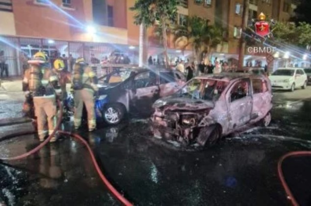 Dois veículos foram atingidos por um incêndio na noite desta sexta-feira (26/9), na QI 23 do Guará II. O Corpo de Bombeiros Militar do Distrito Federal (CBMDF) foi acionado por volta das 20h13 e encontrou um carro em chamas, com o fogo já se propagando para outro automóvel estacionado ao lado.