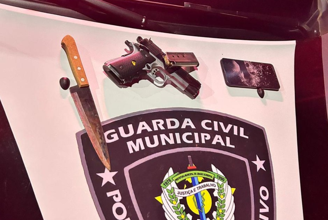 Homem e adolescente são detidos pela GCM de Cidade Ocidental com pist0la municiada no Jardim ABC