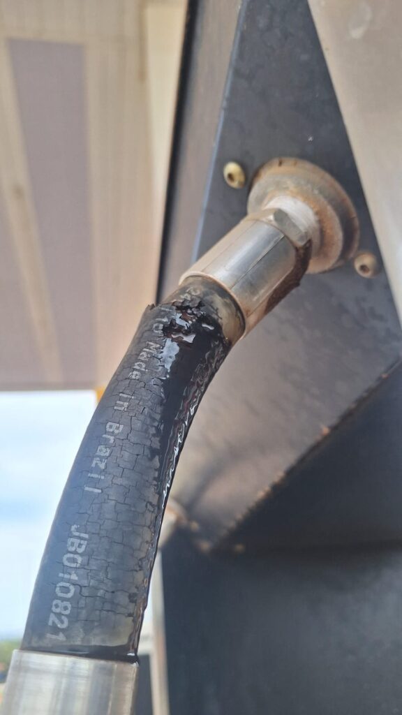 Ao chegar ao local, a equipe constatou o rompimento de uma mangueira de combustível. Durante a inspeção, também foi identificado que os alvarás de funcionamento, sanitário e o certificado de conformidade do Corpo de Bombeiros estavam vencidos.