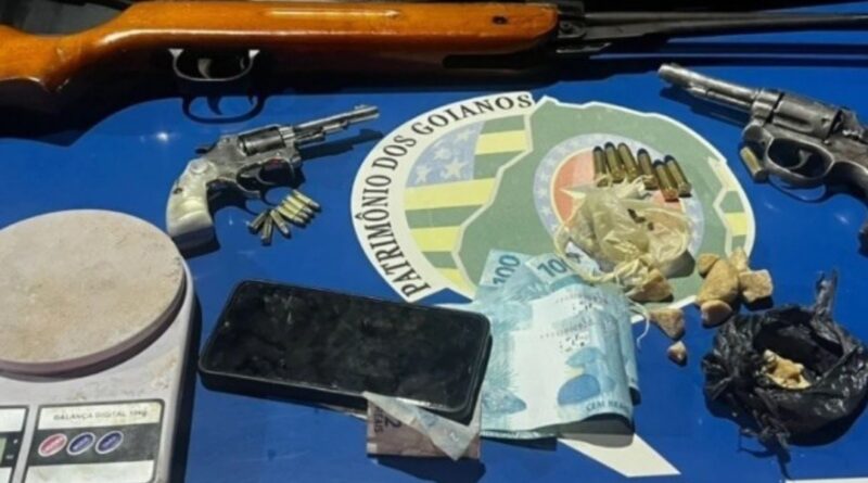 De acordo com a Polícia Militar, ao chegar ao endereço informado, os agentes do 33º Batalhão perceberam várias pessoas correndo para o fundo da residência. Durante a abordagem, um dos indivíduos foi visto arremessando um objeto por cima do muro. Na vistoria, os policiais encontraram dois revólveres e, dentro da casa, uma espingarda calibre 22.