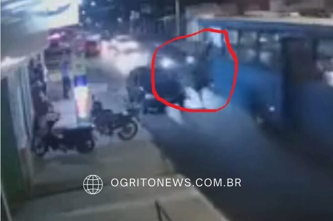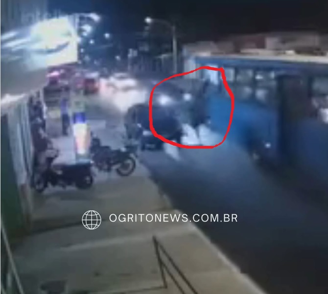 Câmeras de segurança registraram o momento em que dois adolescentes caíram pela janela de um ônibus da Taguatur, na Parada 4 do Pedregal, em Novo Gama (GO), na noite desta quarta-feira (22).