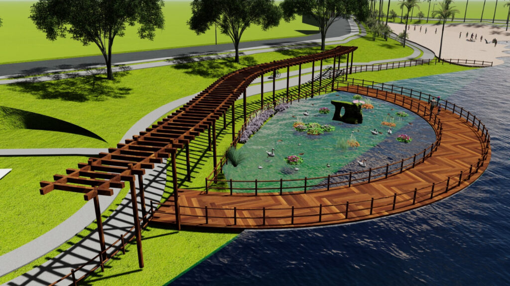 Pedalinhos com área de embarque e desembarque também fazem parte do projeto. Além de jardim flutuante e pista para caminhada ao longo de toda extensão da orla. A revitalização conta com a despoluição da água, um trabalho que será realizado juntamente com a Secretaria Municipal de Meio Ambiente, e a interrupção do esgoto que cai no lago.