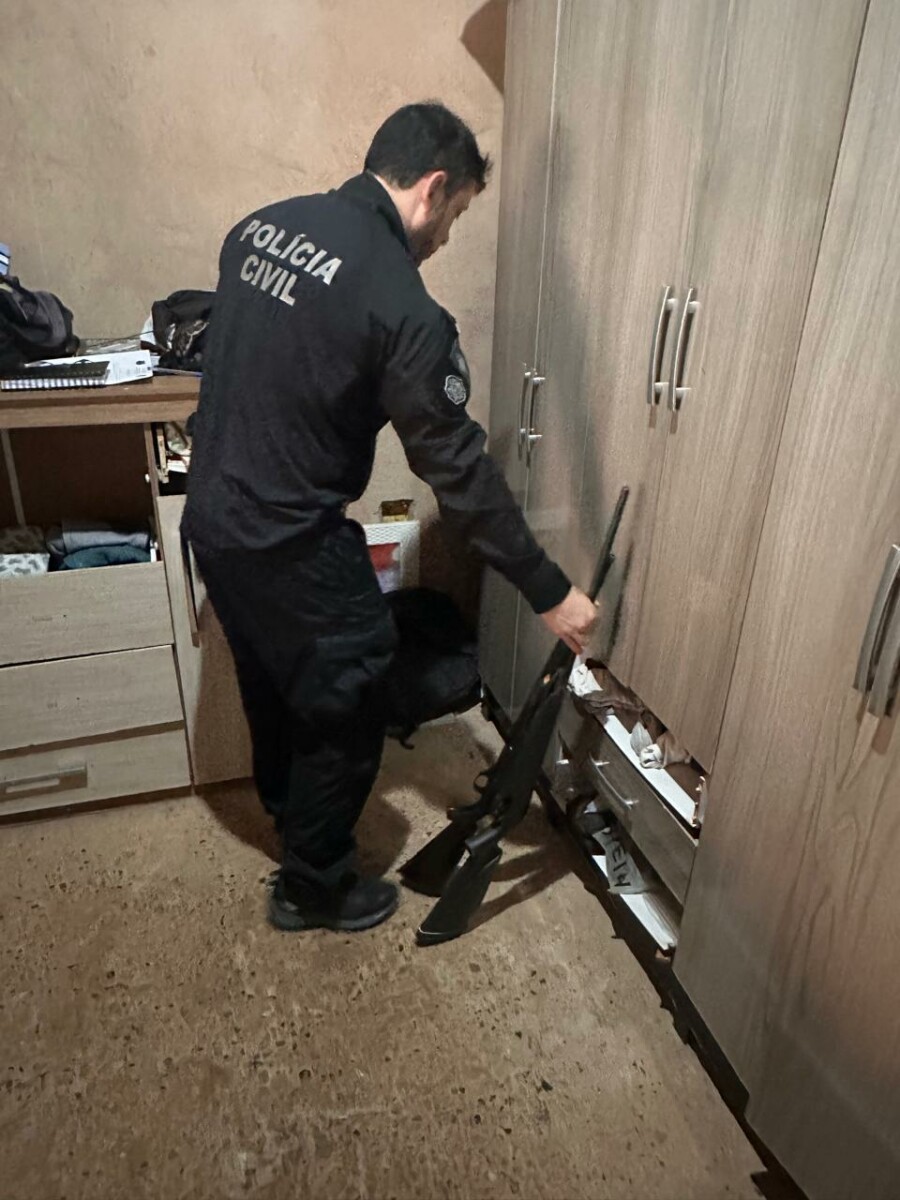 Durante o cumprimento dos mandados, os policiais também realizaram buscas nas residências dos investigados. Na casa do homem de 39 anos, foram encontradas duas espingardas — uma calibre .22 e outra adaptada —, ambas em situação irregular.