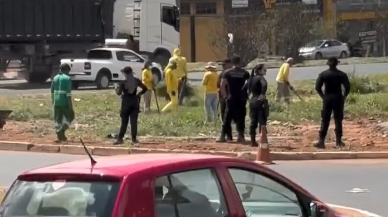 Vídeo mostra presos realizando limpeza às margens da BR-040