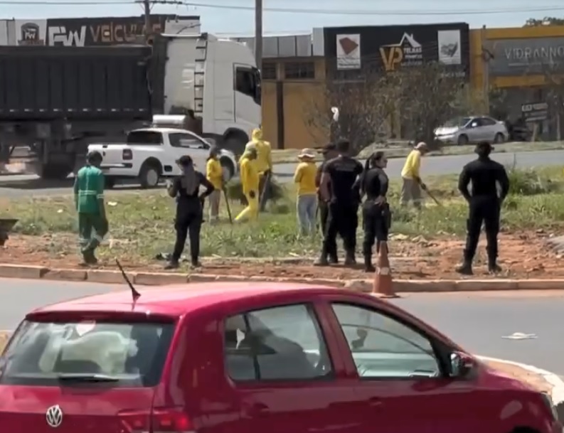 Durante toda a semana, detentos do sistema prisional atuaram em diversos serviços públicos no município de Valparaíso de Goiás. Sob supervisão e escolta da Polícia Penal, os reeducandos realizaram atividades como a demolição do antigo CAIS e serviços de limpeza e manutenção urbana. Um vídeo feito por um morador mostra os detentos limpando o canteiro próximo à BR-040.