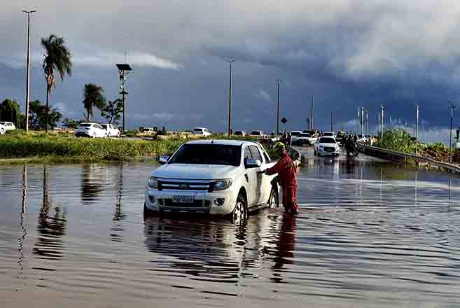 A forte chuva deste domingo (23/11) voltou a alagar o trecho do Costa Atacadão, próximo à BR-040, em Valparaíso de Goiás — um ponto recorrente de alagamentos. Motoristas enfrentaram dificuldades para atravessar a área, que rapidamente ficou coberta pela água.