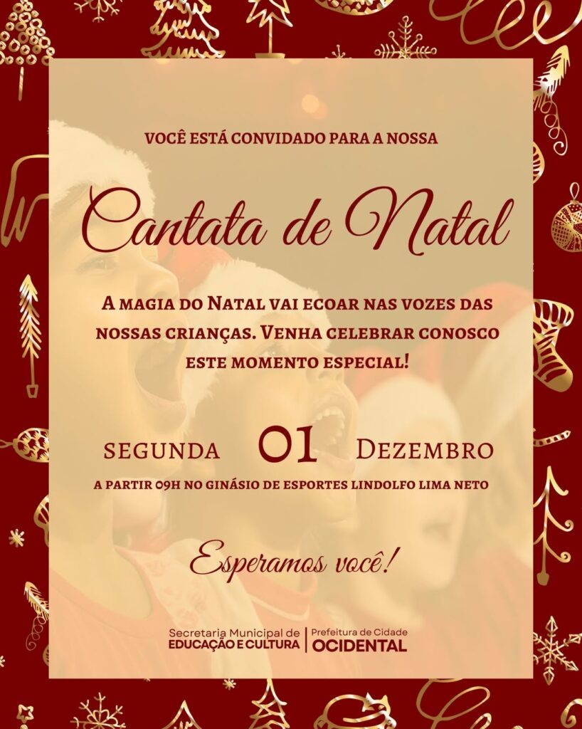 Mais cedo, às 9h, será realizada a Cantata de Natal no Ginásio de Esportes Lindolfo Lima, apresentada pelos alunos da rede municipal, dando início às atividades do dia.