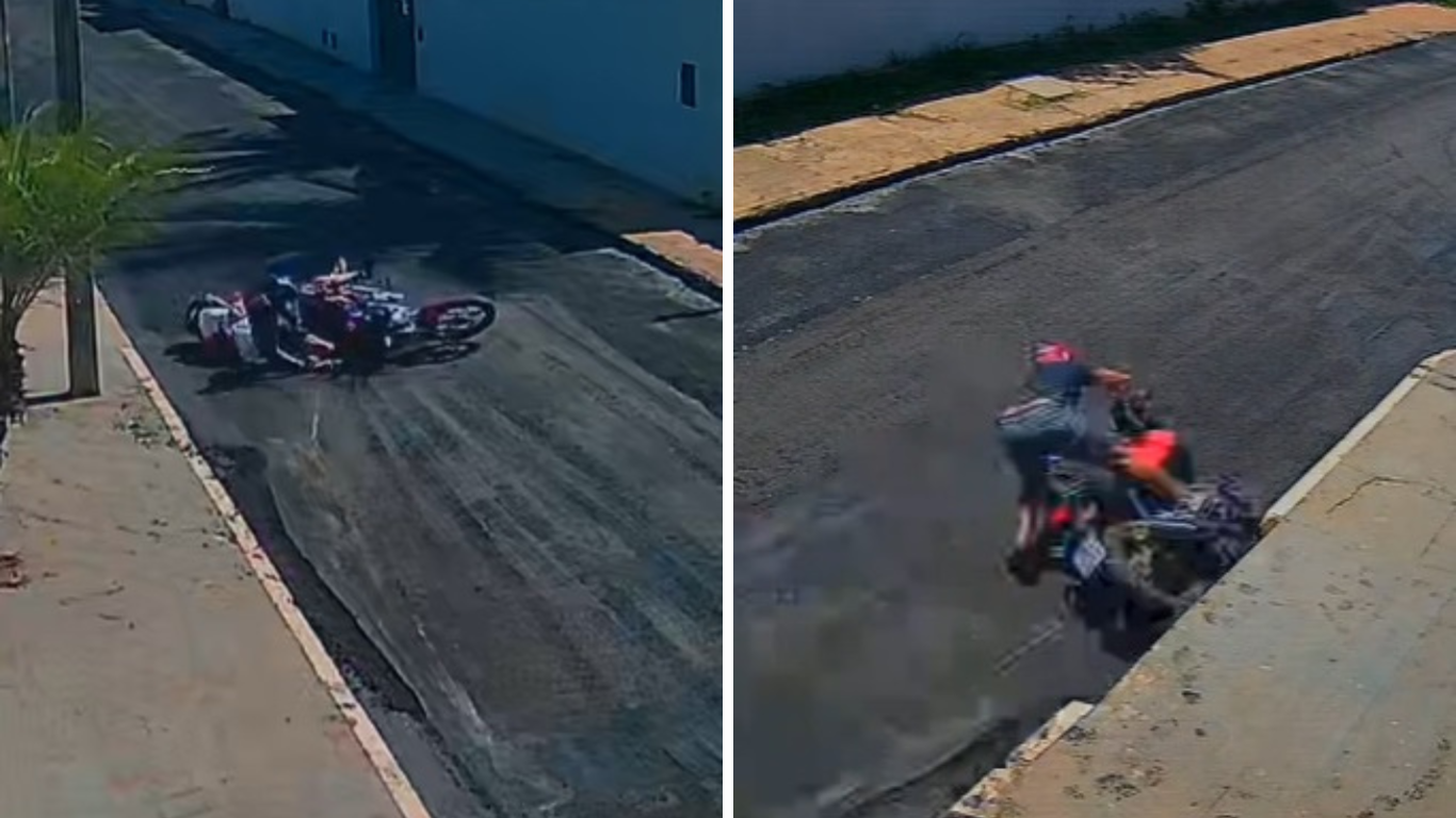 Vídeos registraram os dois acidentes. O primeiro ocorreu às 09h34, quando um motociclista caiu com a companheira na garupa; os dois sofreram ferimentos leves nas pernas. O segundo tombo aconteceu às 10h25, praticamente no mesmo ponto, reforçando a preocupação de quem passa pelo local.