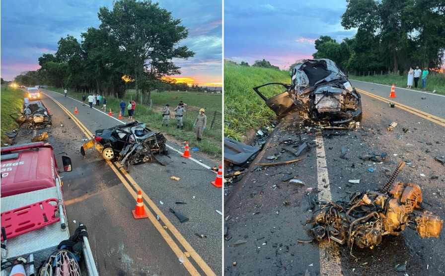 Um grave acidente registrado nesta quinta-feira (25), na zona rural do distrito de Novo Planalto, em Firminópolis (GO), resultou na morte de cinco pessoas, entre elas três policiais militares de Goiás. A colisão foi uma batida frontal entre um carro de passeio e uma caminhonete, segundo informações do Corpo de Bombeiros.