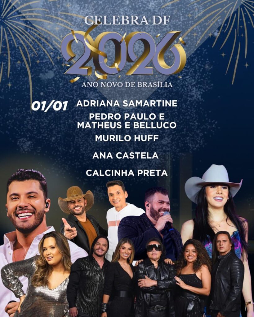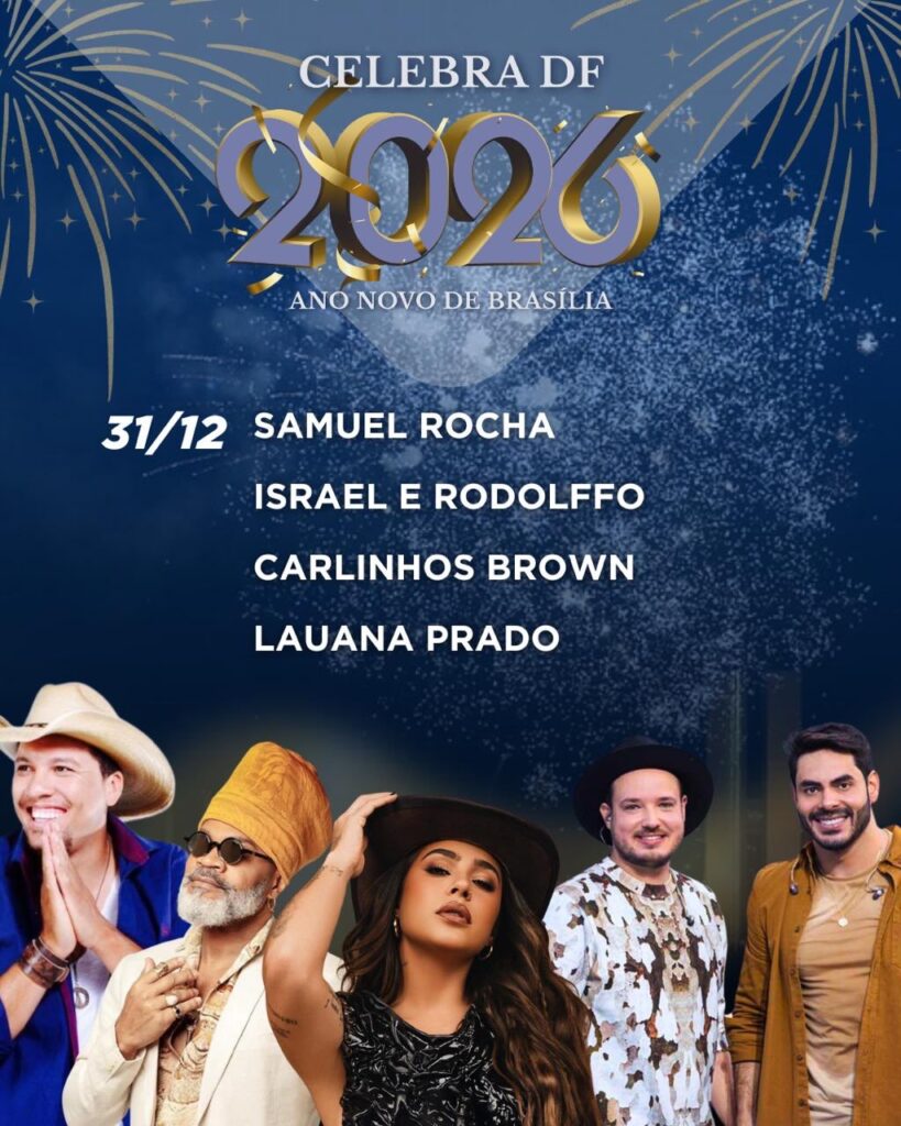 Na Esplanada dos Ministérios, a virada do ano será marcada por uma série de shows de artistas consagrados da música brasileira, reunindo diferentes estilos e gerações. Na noite do dia 31 de dezembro, se apresentam Samuel Rocha, Carlinhos Brown e Lauana Prado, que comanda o momento da virada, além da dupla Israel e Rodolffo. A chegada de 2026 será celebrada com uma queima de fogos de 12 minutos, reunindo o público no principal cartão-postal da capital.