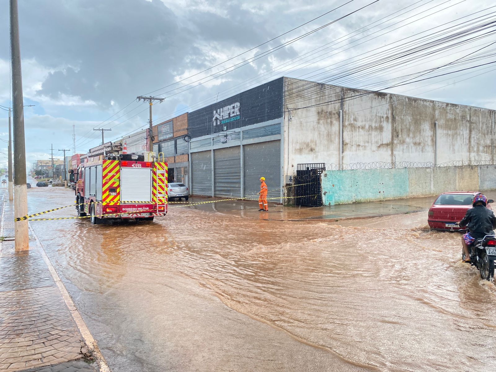 A forte chuva que atingiu Luziânia na tarde desta sexta-feira (2) causou alagamento na Avenida Sarah Kubitschek, no Setor JK, e deixou pessoas presas dentro de veículos que ficaram ilhados no trecho. O Corpo de Bombeiros Militar de Goiás (CBMGO) foi acionado para atender a ocorrência.