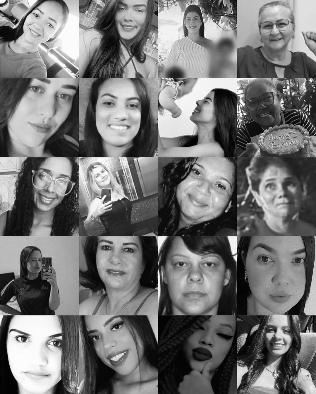 Essas são apenas 20 das 60 mulheres que perderam a vida em Goiá. 60 famílias destruídas pela violência, destruídas pelo feminicídio.