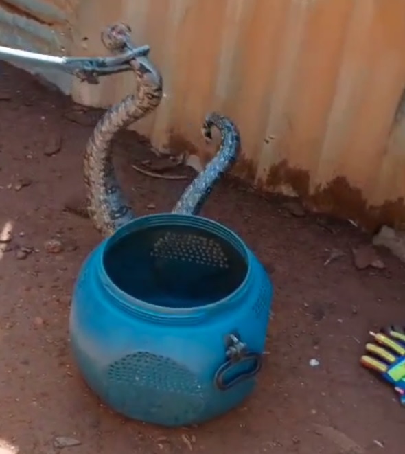 Ao chegar ao local, a guarnição identificou a presença da serpente e realizou a captura de forma segura, utilizando técnicas adequadas de salvamento e equipamentos específicos, como a pinça de contenção para répteis. A ação ocorreu sem registro de feridos.