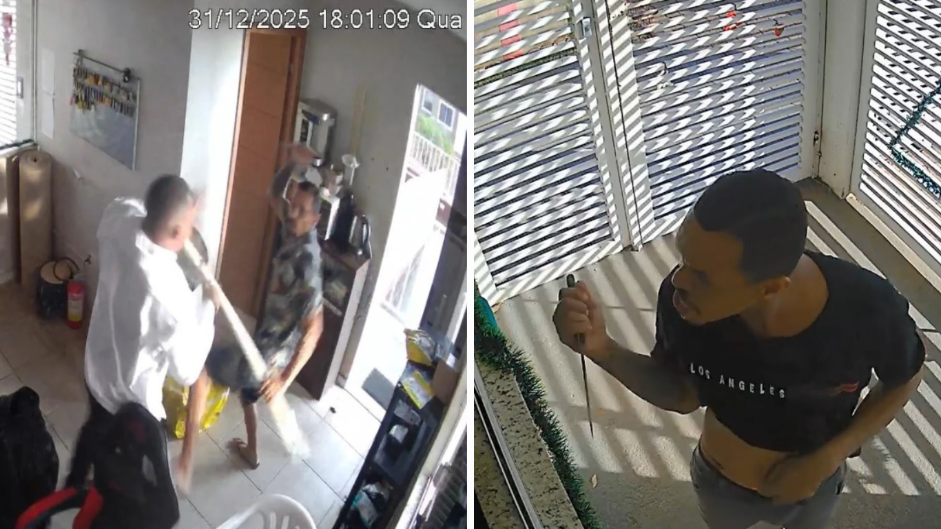 Imagens divulgadas após o crime mostram que, no dia seguinte ao ataque, o homem teria retornado ao condomínio fazendo ameaças, afirmando que mataria o porteiro e o síndico. Questionado sobre esse episódio, o delegado afirmou que, no momento da apresentação, o suspeito estava mais sereno e sob orientação jurídica.