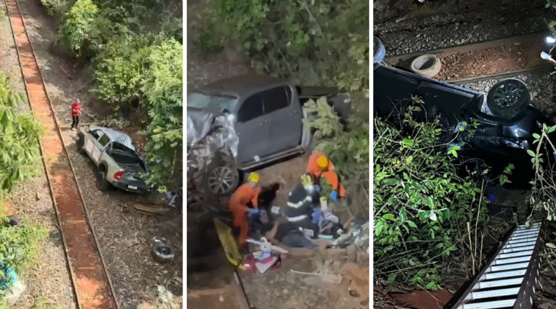 O segundo acidente aconteceu na madrugada de domingo (11), por volta das 1h50, quando uma caminhonete caiu em um despenhadeiro e parou sobre os trilhos da linha férrea, em um trecho íngreme e de difícil acesso da GO-521. Duas pessoas ficaram feridas e o resgate exigiu uma operação cuidadosa do Corpo de Bombeiros Militar de Goiás.