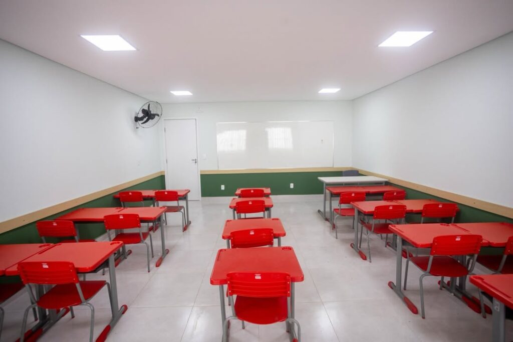 A nova escola conta com dois pavimentos e uma estrutura completa, projetada para oferecer conforto, segurança e melhores condições de aprendizagem. Ao todo, são oito salas de aula, além de auditório, refeitório, cozinha, diretoria, secretaria e banheiros masculinos e femininos, assegurando suporte adequado tanto para as atividades pedagógicas quanto administrativas.