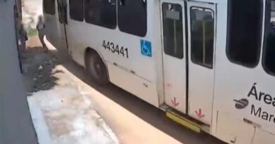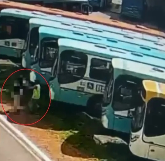 O suspeito se escondeu entre ônibus estacionados e, ao perceber a aproximação da vítima, correu e tentou agarrá-la.