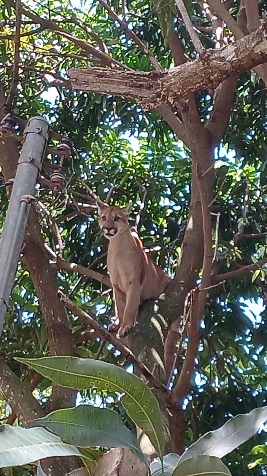 Onça-parda aparece em árvore próxima a residências no Novo Gama