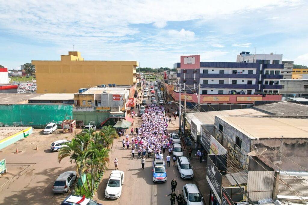 A caminhada começou em frente ao Atacadão Dia a Dia e seguiu até a Igreja Nossa Senhora Imaculada Conceição, em um percurso simbólico marcado por mensagens de união e reflexão.