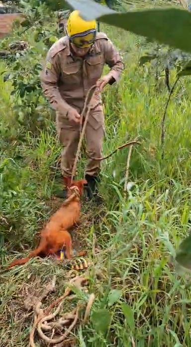 Com o uso de cordas e técnicas específicas de salvamento, os bombeiros conseguiram retirar o cachorro em segurança e sem ferimentos. A operação foi acompanhada por moradores, que auxiliaram no suporte inicial até a chegada da equipe.