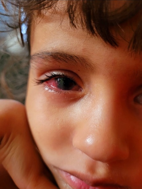 De acordo com relatório médico, Eloah já apresenta comprometimento severo da córnea do olho esquerdo, com formação de tecido que impede o desenvolvimento adequado da visão. Atualmente, ela possui visão reduzida em um dos olhos e apenas percepção de luz no outro, o que acende um alerta para o risco iminente de perda visual permanente.